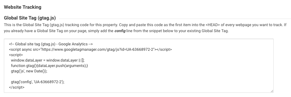 To set up your account, navigate to the Google Analytics homepage and create an account. Next, you’ll want to locate your tracking code. It should be under Tracking Info › Tracking Code. Then, copy the code that looks similar to the example below: