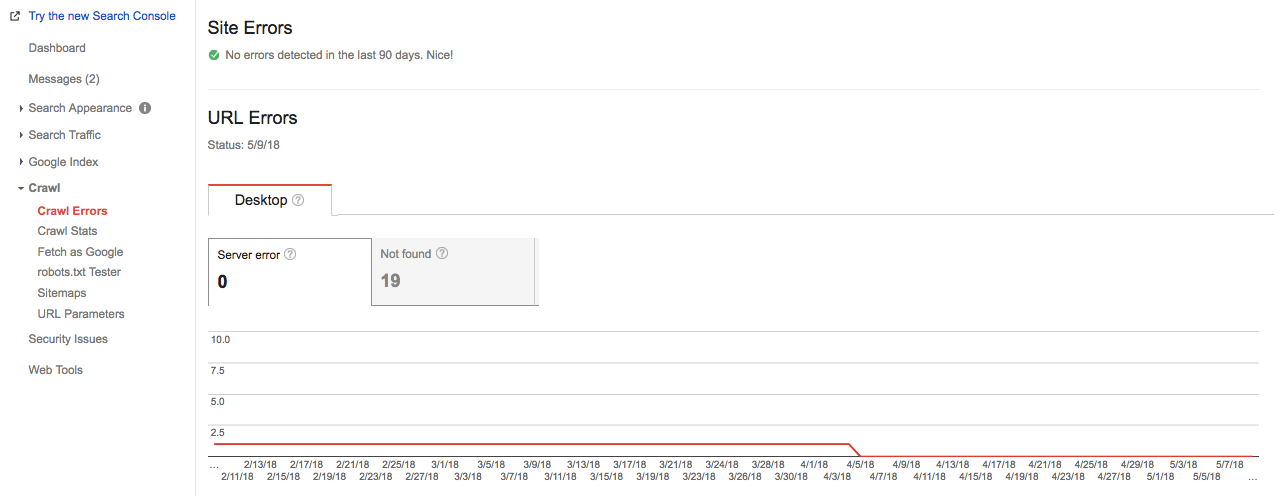The easiest way to check your site for broken links is to open up Google Search Console and click on ‘Crawl Errors’.