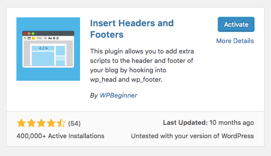 Install and activate the plugin shown in the picture above. Next, open up the plugin by going to Settings › Insert Headers and Footers.