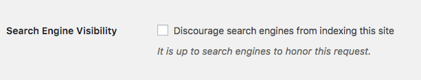 To see if this setting is on, navigate to Settings › Reading from within the WordPress dashboard. Scroll down and you’ll see a section called Search Engine Visibility.